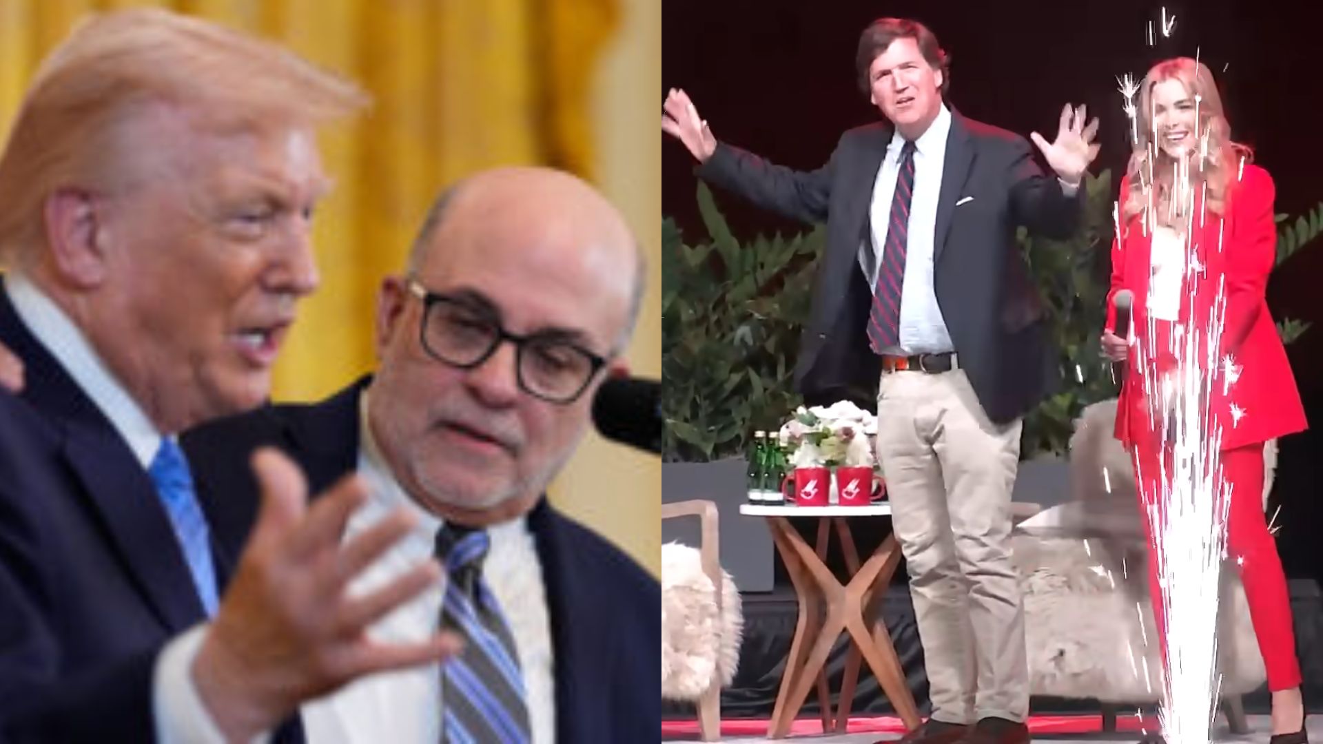 LEFT: Donald Trump and Mark Levin (AP Photo/Alex Brandon) RIGHT: Tucker Carlson and Megyn Kelly (Screenshot)