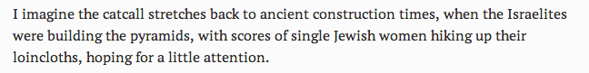 Catcalls: good enough for Jewish slaves, good enough for you.
