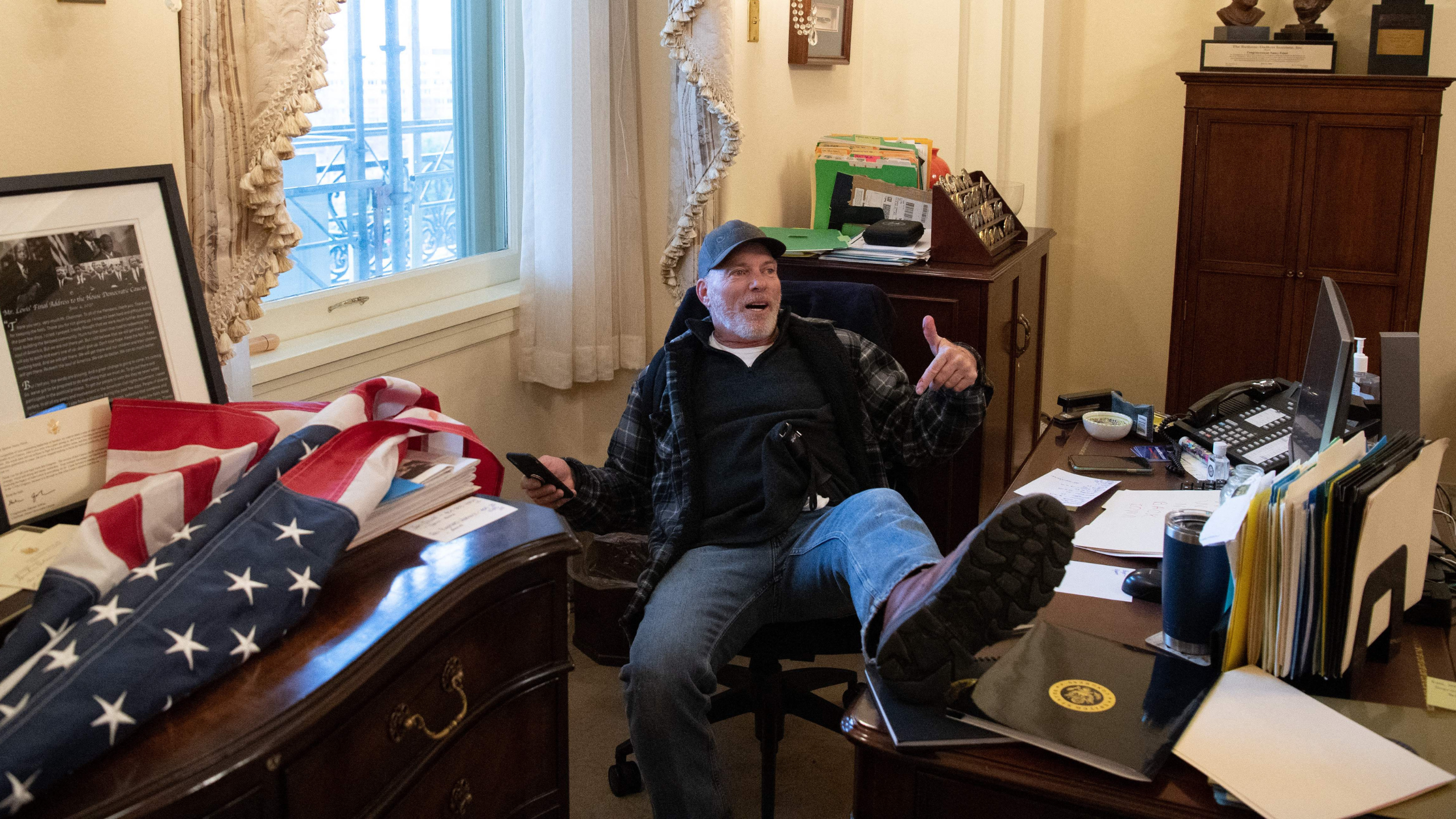 One of the people pictured sitting at Pelosi’s desk, was Richard Barnett, from Arkansas. He was arrested two days after the January 6th events and eventually pleaded no guilty to all federal charges.