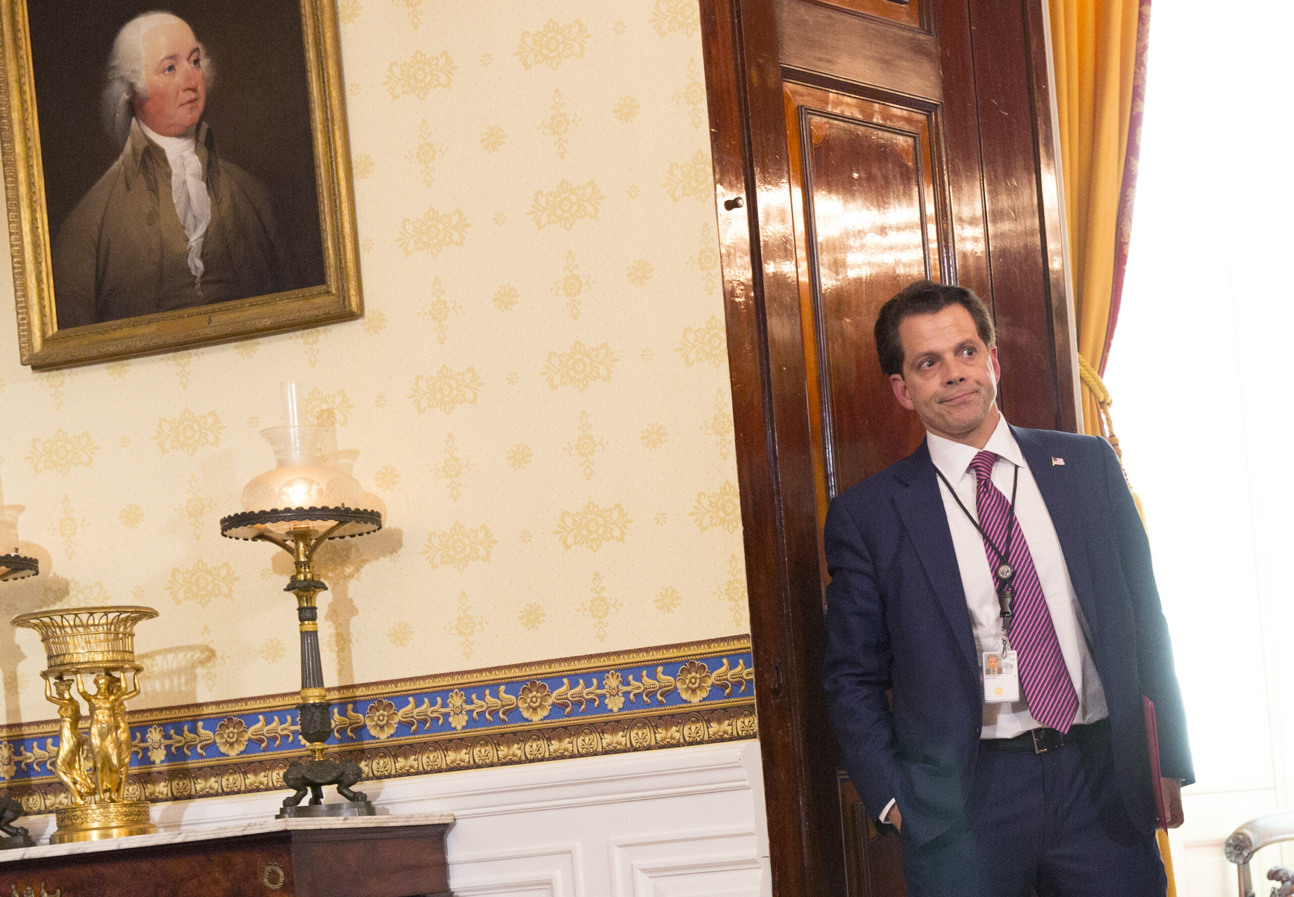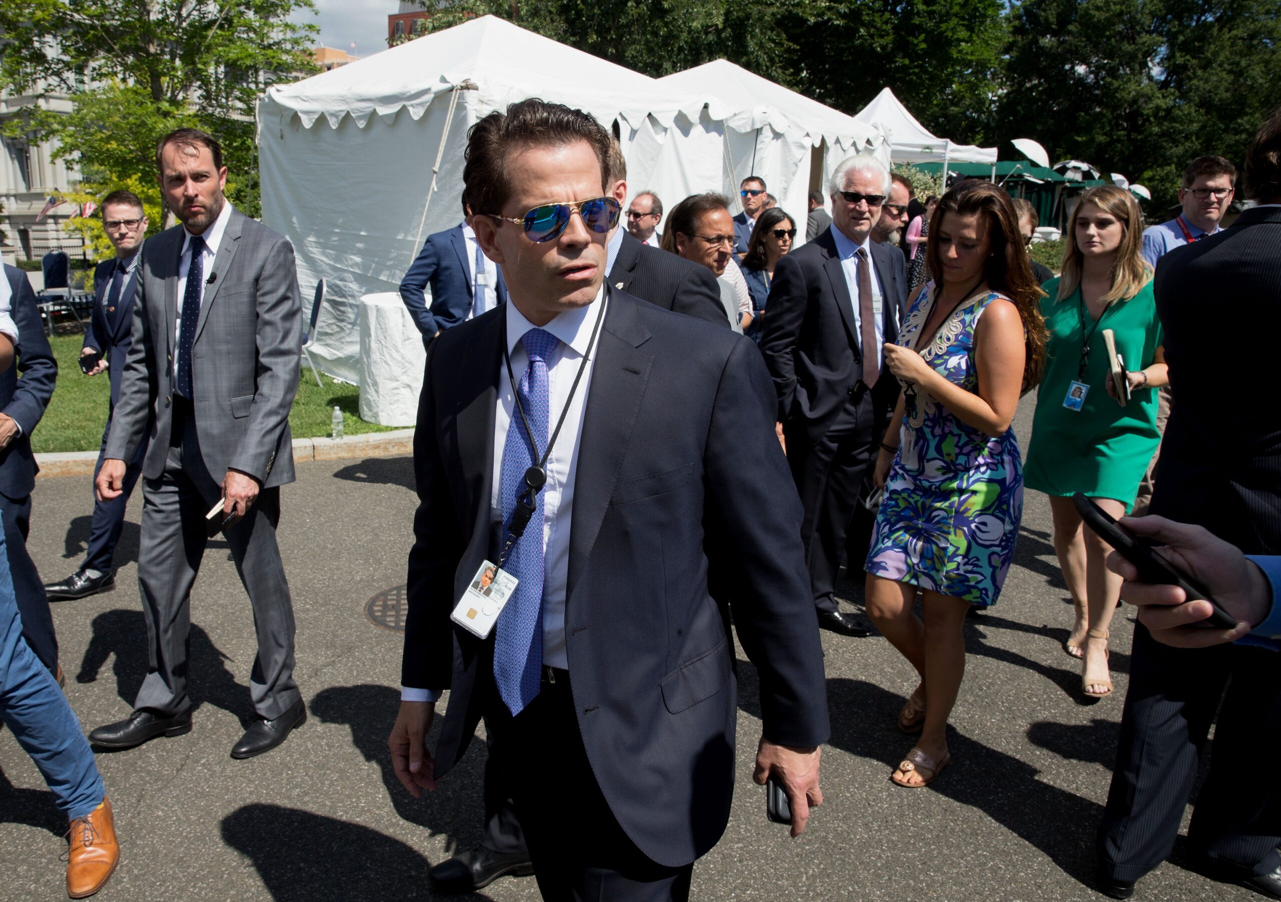 Here is a photo I found of Scaramucci in the West Wing that day, looking a little perturbed: