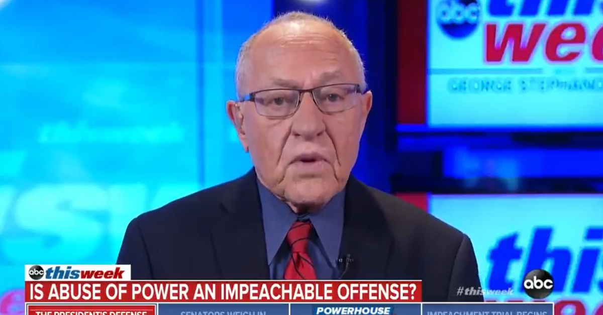 Dershowitz argued in recent days that Trump cannot be impeached for abuse of power (whether the allegations of the Ukraine scandal hold up or not).
