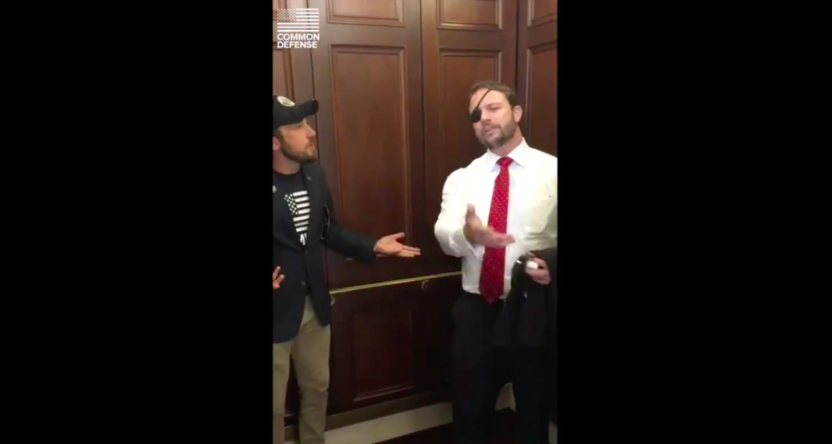 Rep. Dan Crenshaw (R-TX) was confronted by two combat veterans in the halls of Congress on Thursday who called out the freshman lawmaker over his support for President Donald Trump.