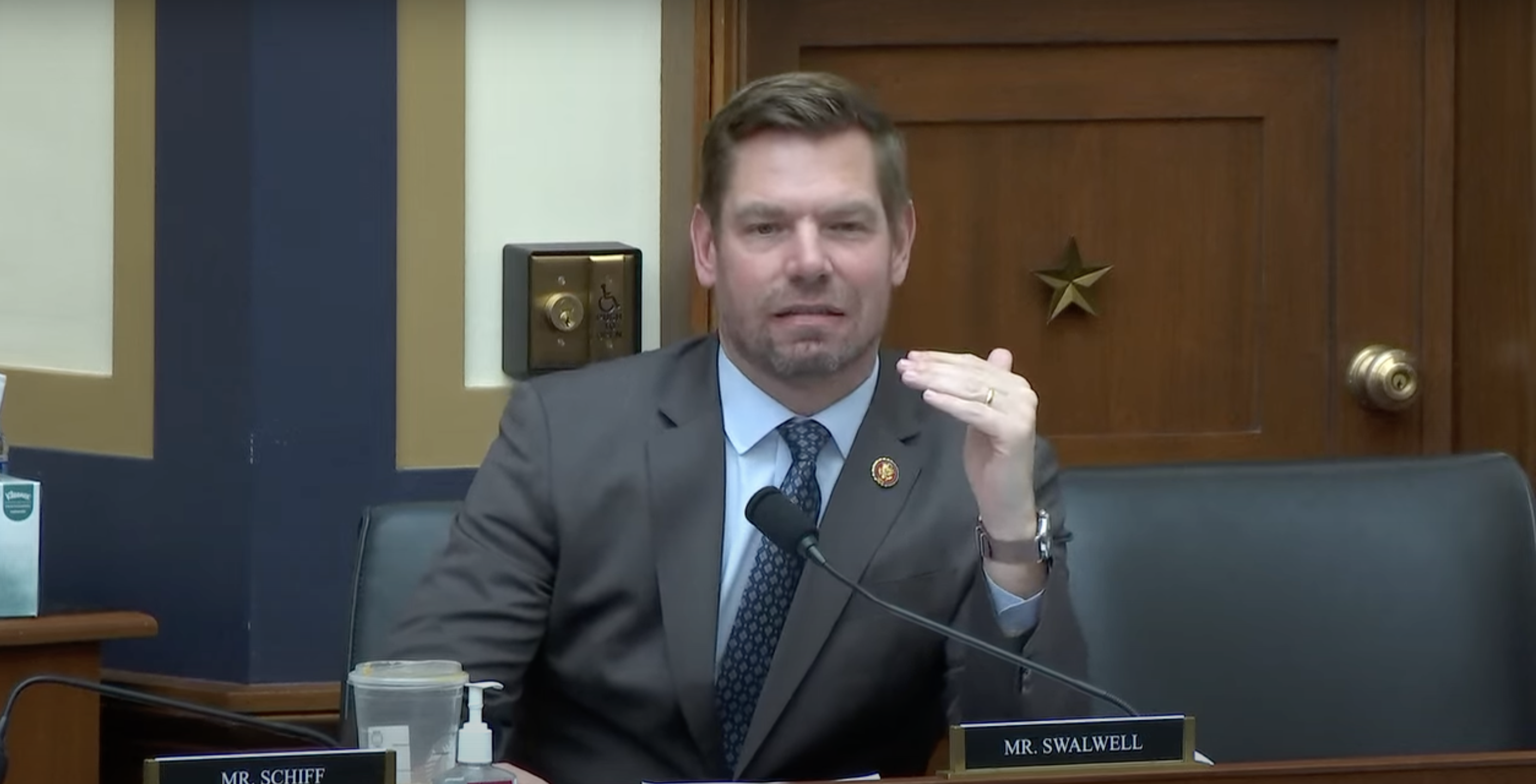 Toward the end of his time during the hearing, Swalwell asked over and over how Republicans planned to enforce “gender checks” in locker rooms.
