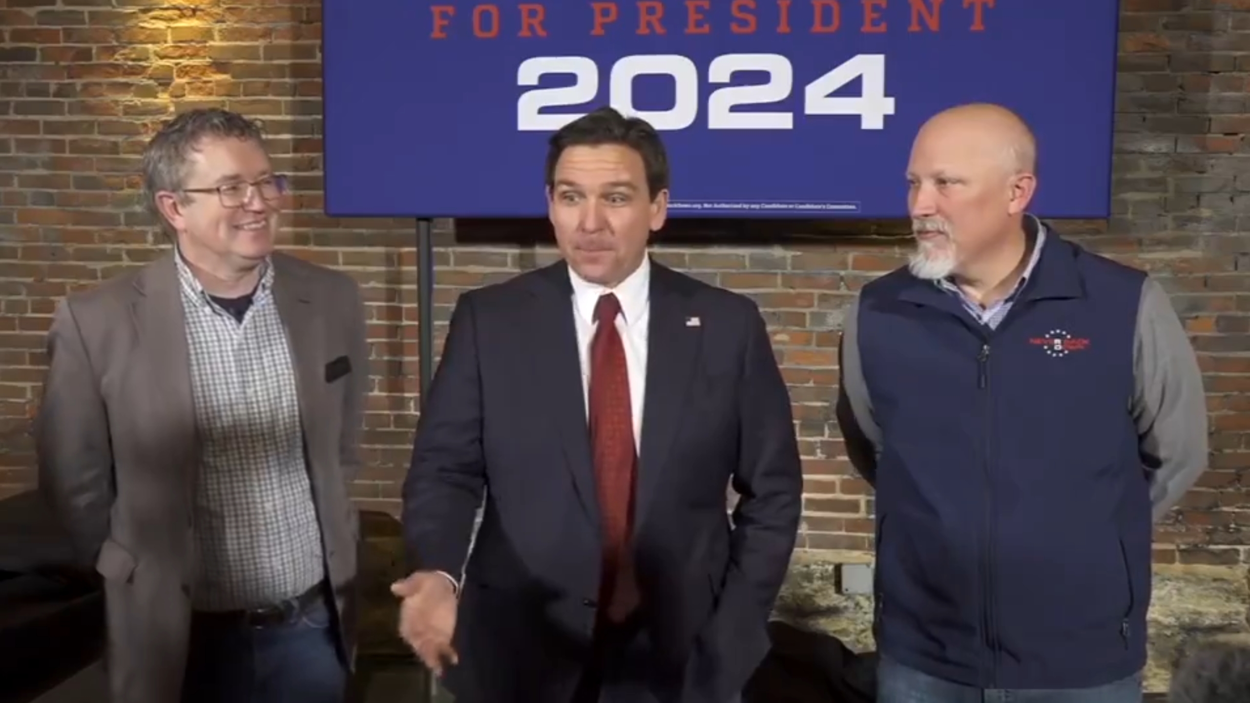 Speaking alongside Reps. Thomas Massie (R-KY) and Chip Roy (R-TX) in Iowa, the Florida governor appeared to forget Ramaswamy’s name while discussing Trump’s latest attack.