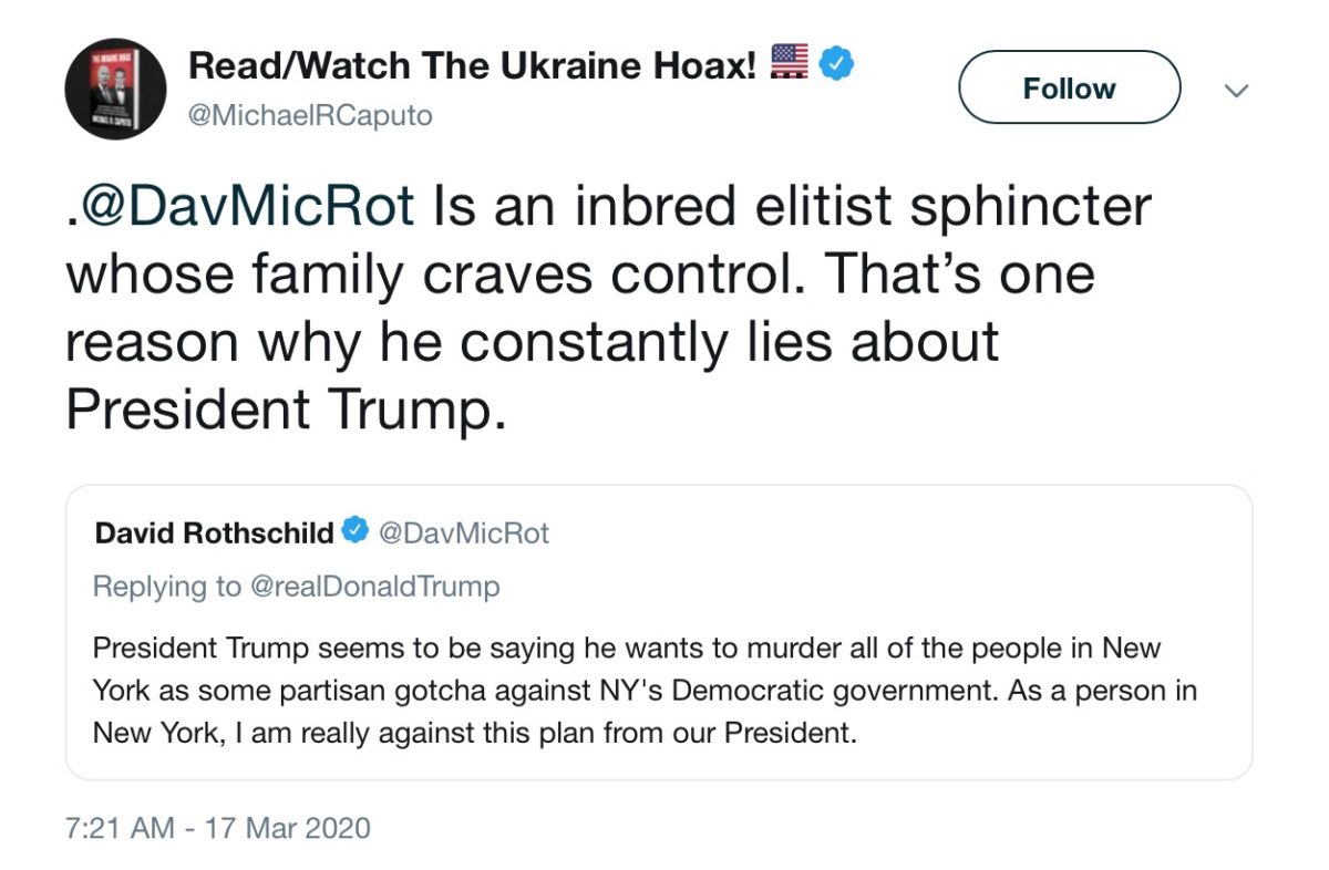 HHS Spox Michael Caputo Deletes Slew of Tweets Featuring Coronavirus Denial, Conspiracy Theories, Racist Comments About China