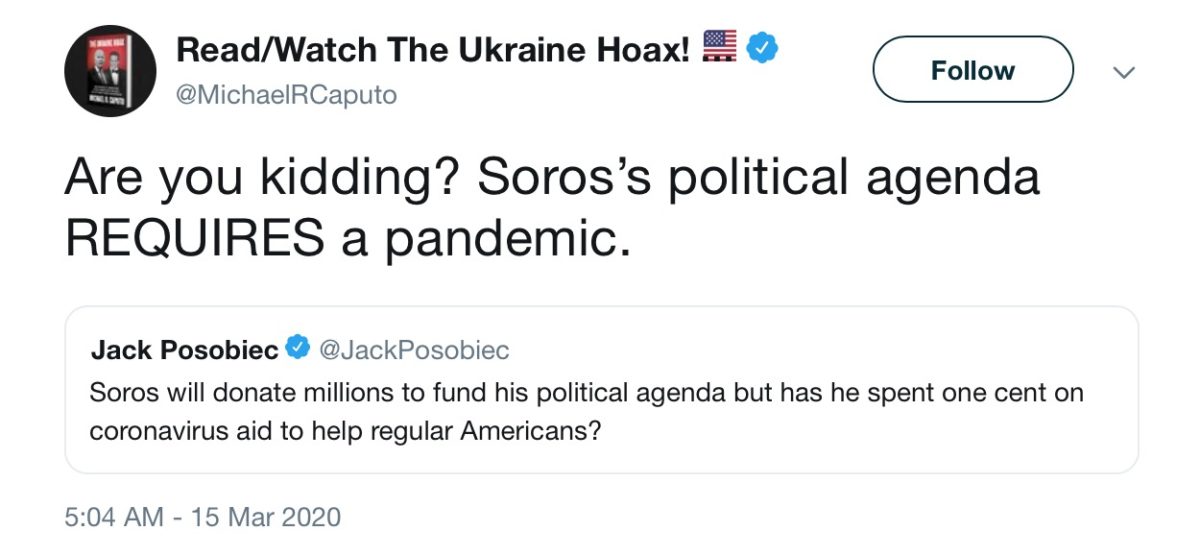 And here’s a couple of Caputo’s retweets. For those who don’t know, the picture is of George Soros.