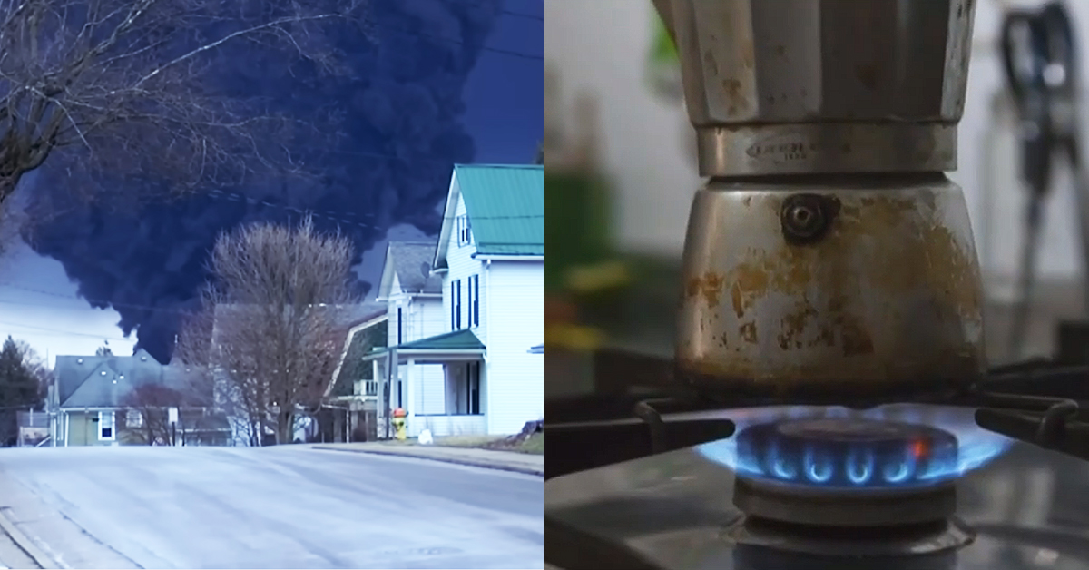 The assertion included a side-by-side comparison of two tweets in the shot/chaser style, on health-related subjects. The first was a tweet from this week on the subject of the train derailment disaster in East Palestine, Ohio, and the second a tweet from January about gas stoves.