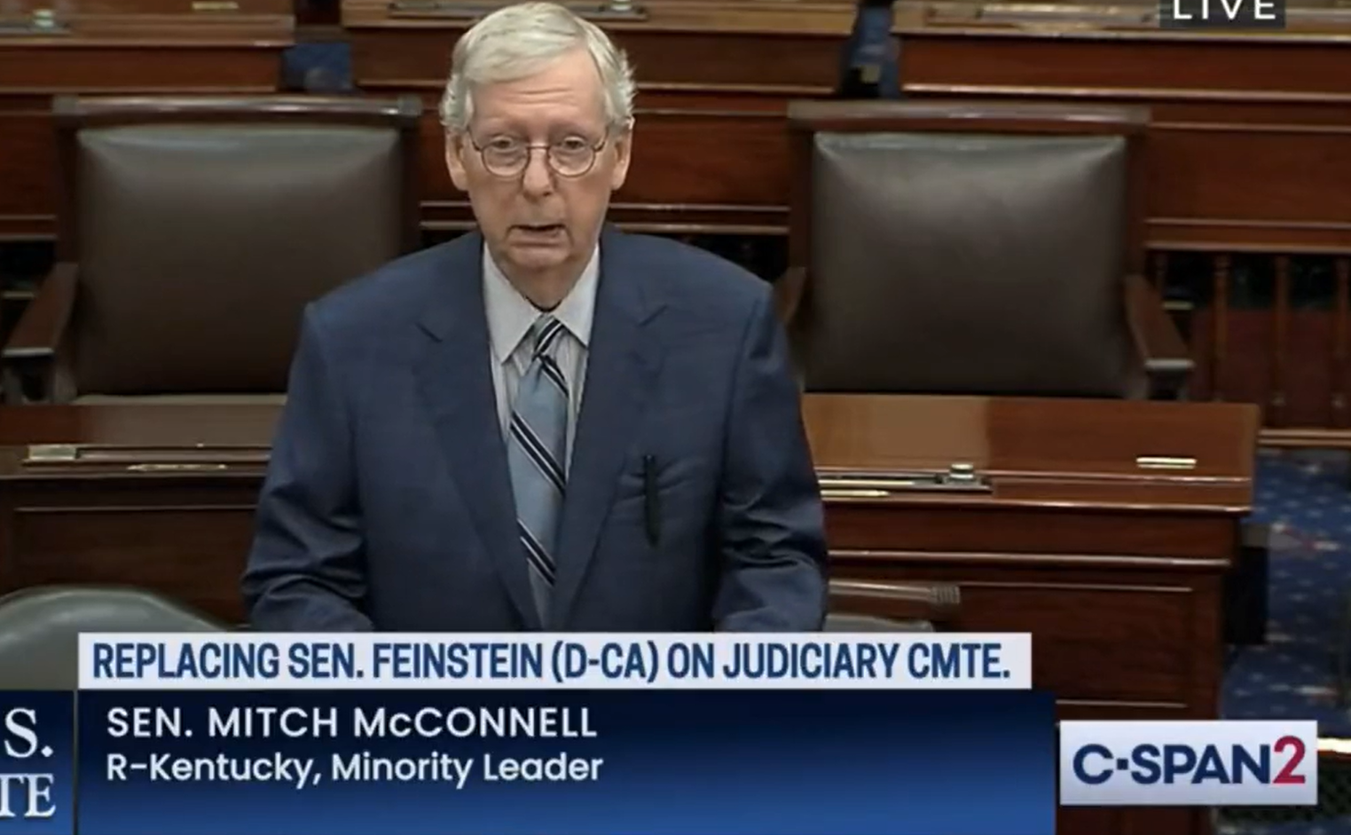 “Some of the same far-left voices who’ve attacked Senator Feinstein in the past are now suggesting that the Senate move her off of the Judiciary Committee indefinitely. Indefinitely,” observed McC0nnell. “The stated reason? The supposed emergency is that Senate Democrats are unable to push through small fraction of their nominees that are so extreme, so extreme and so unqualified that they cannot win a single Republican vote in Committee.”