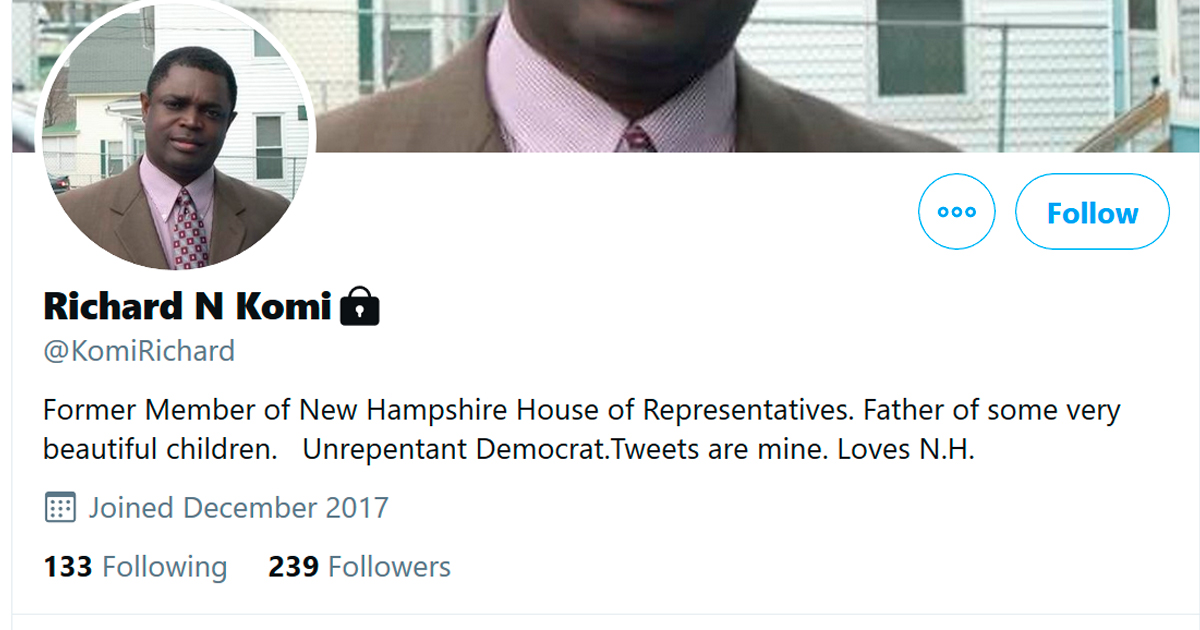 Following calls for Komi’s resignation, he set his Twitter account to private and changed the bio to read, “Former Member of New Hampshire House of Representatives.”