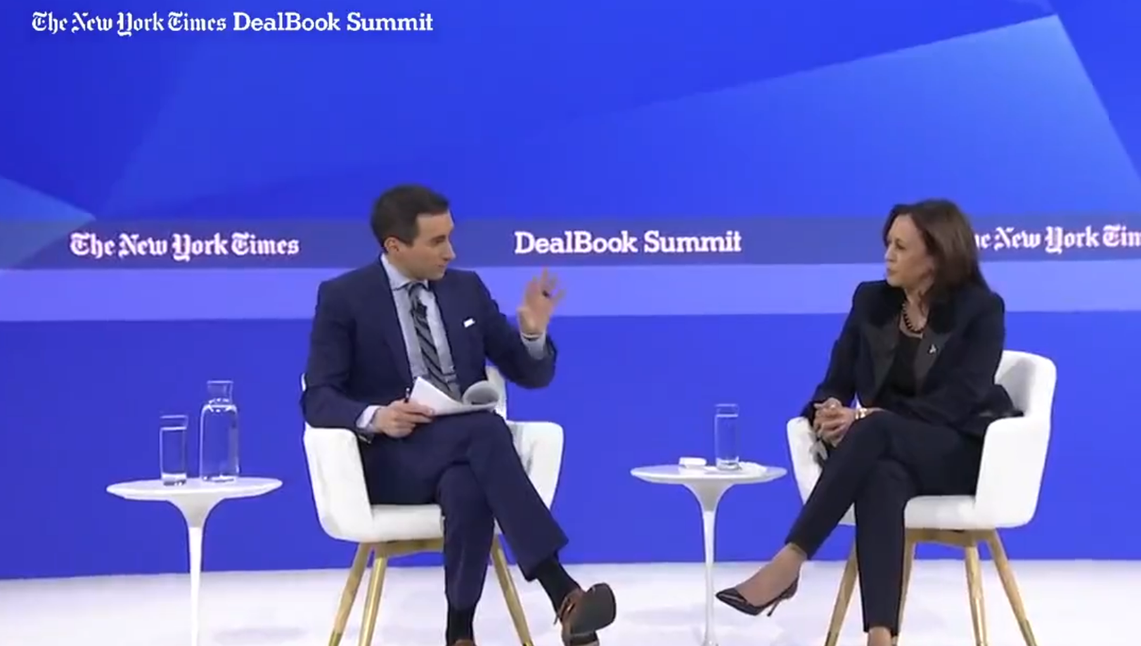 The New York Times’ Andrew Ross Sorkin expressed surprise at Vice President Kamala Harris’s refusal to comment on the Chinese-owned social media platform TikTok at the Times‘ DealBook Summit on Wednesday.