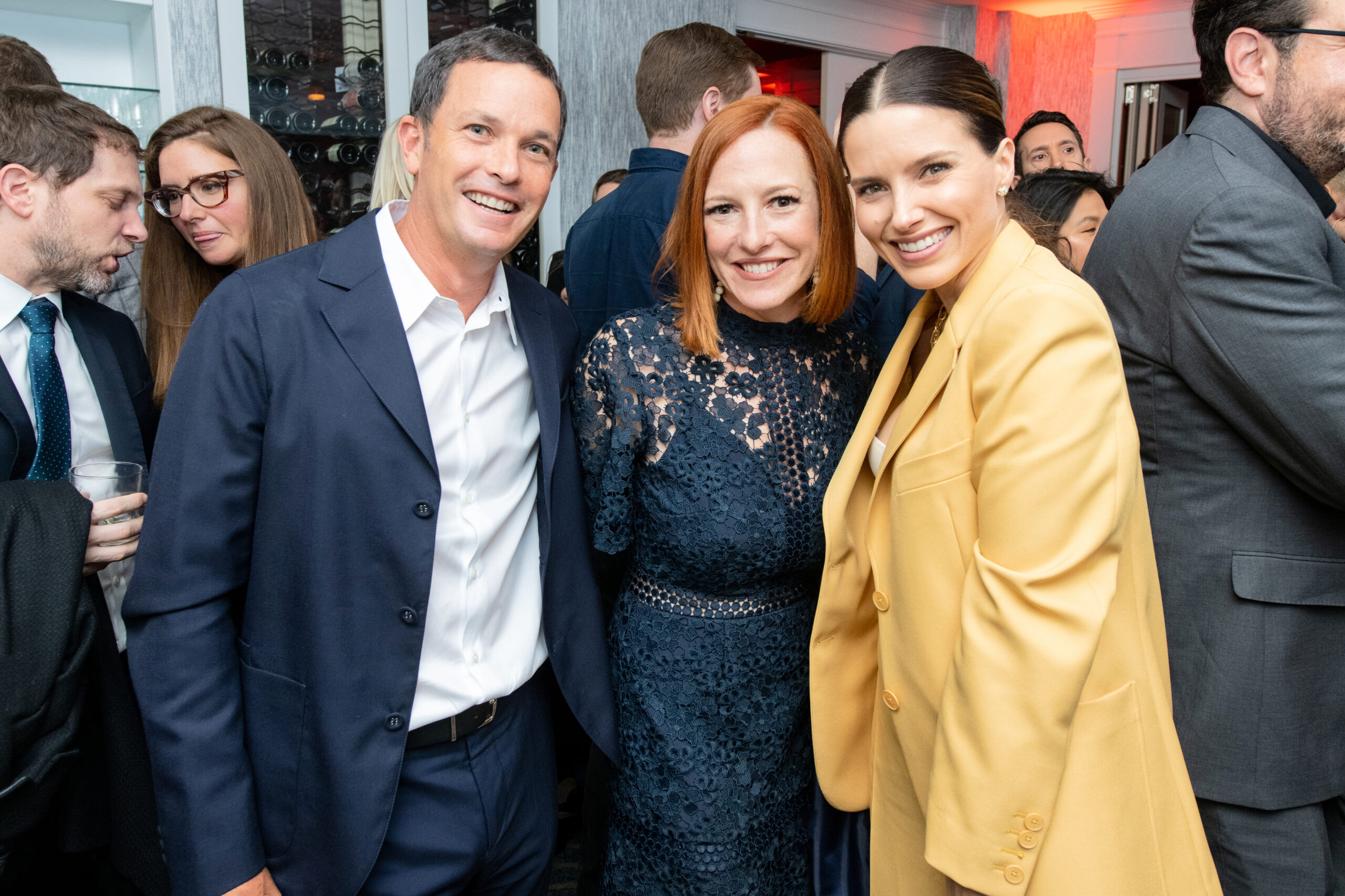 Political and media figures also flooded the pre-dinner parties on Saturday night, including the Politico/CBS reception, which hosted potential 2024 contenders Gov. Glenn Youngkin (R-VA) and former Rep. Will Hurd, Susan Rice, Fiona Hill, Jen Psaki, DNC Chair Jaime Harrison, Rep. Jim Costa (D-CA), José Andrés, Jim Acosta, Billy Eichner, Kevin McHale, Brian Stelter, Richard Strauss, Zerlina Maxwell, Ian Sams, Jeffrey Toobin, Katy Tur, Garrett Ventry, Steve Ricchetti, Rob Flaherty, Drew Barrymore, Gayle King, Miranda Kerr and her husband Snap CEO Evan Spiegel, and several other stars.