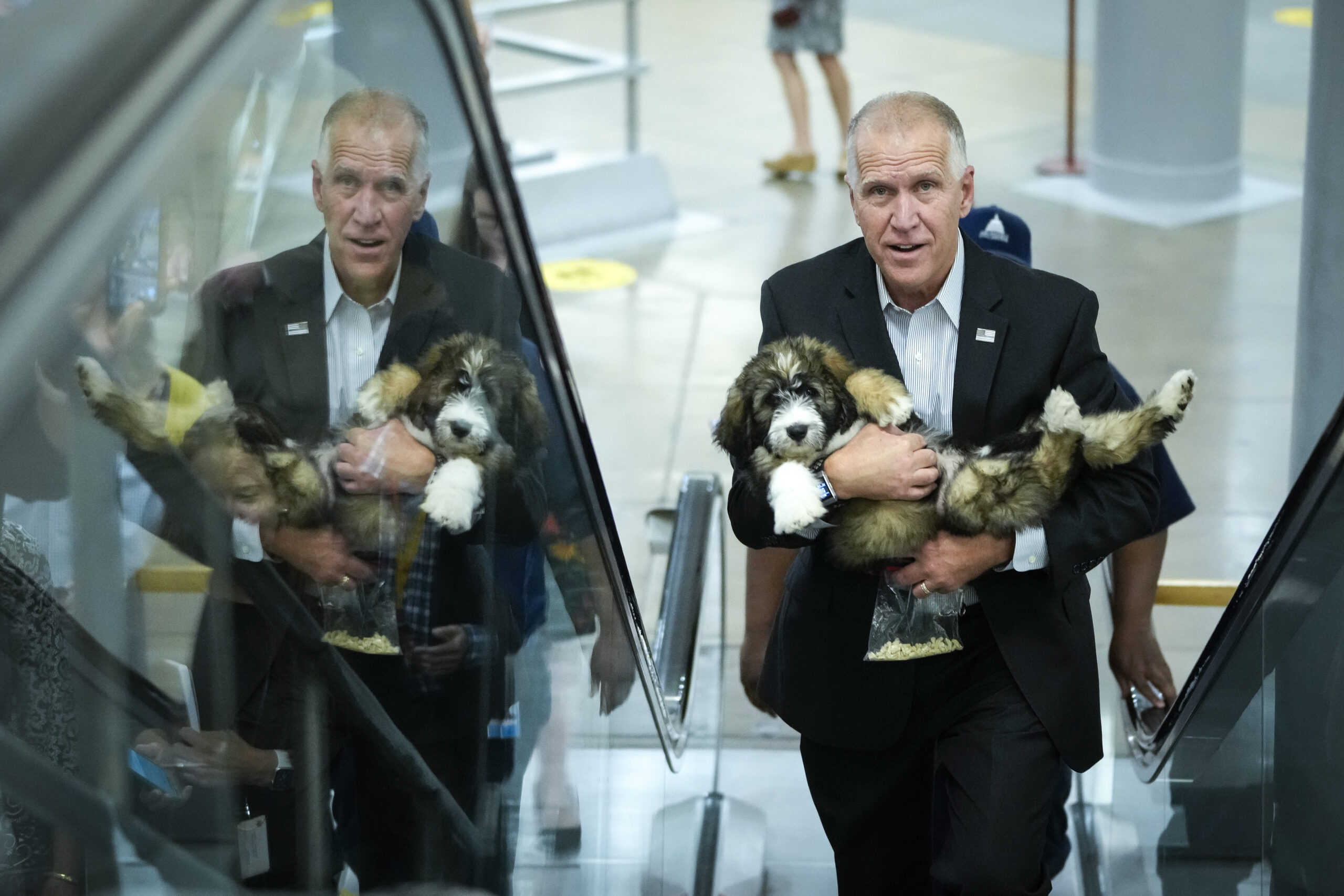 Sen. Thom Tillis (R-NC) was showing off his dog a little earlier when he realized he forgot to do something this afternoon