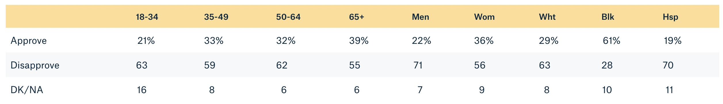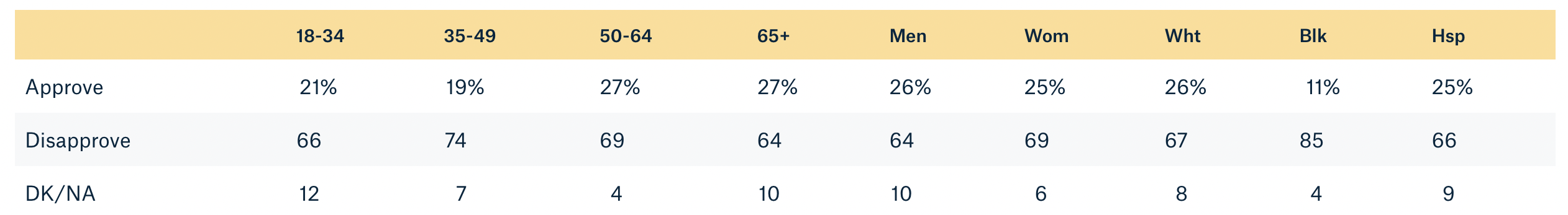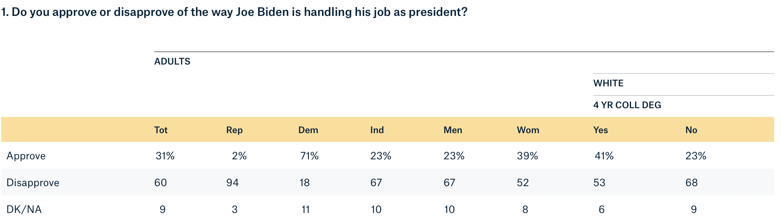 Respondents were asked the question, “Do you approve or disapprove of the way Joe Biden is handling his job as president?”