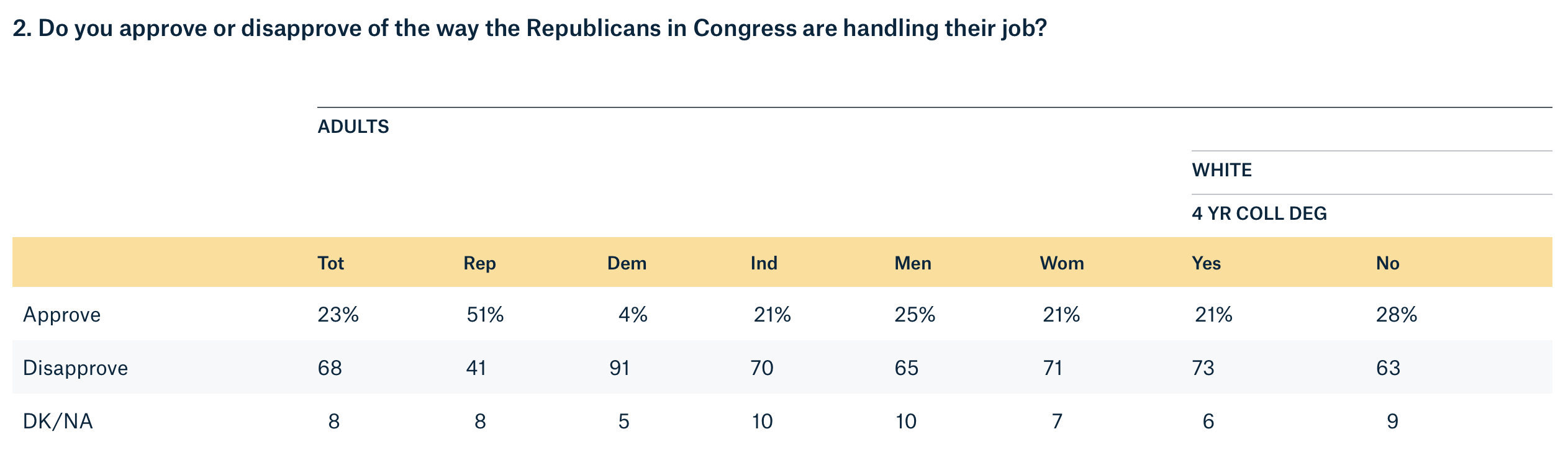 Respondents to the survey were asked, “Do you approve or disapprove of the way the Republicans in Congress are handling their job?”