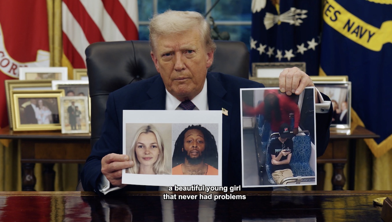 The president then flashed a printed picture of Zarutska aboard the train, right before Brown Jr. fatally stabbed her. He continued:
