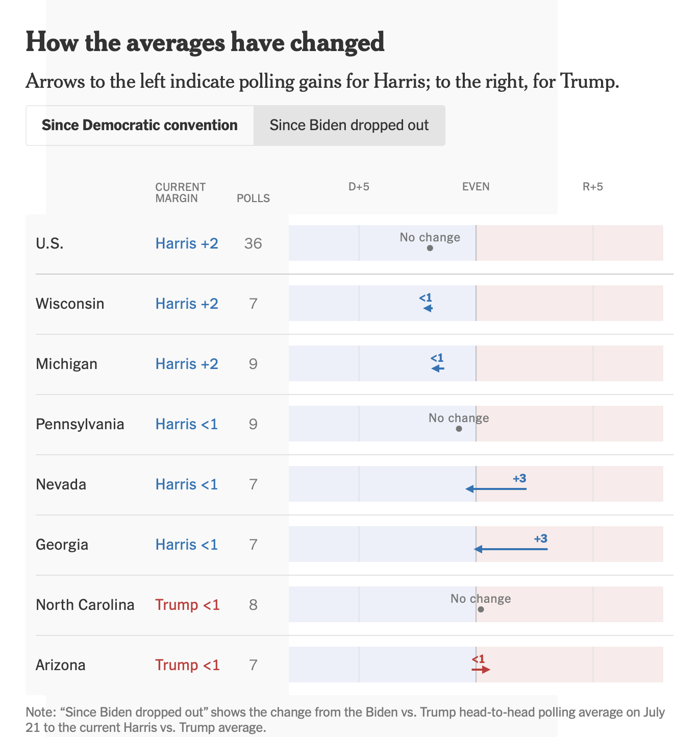 The Times‘s Nate Cohn commented the survey suggests Harris has “Stalled after a euphoric August.” Cohn wrote: