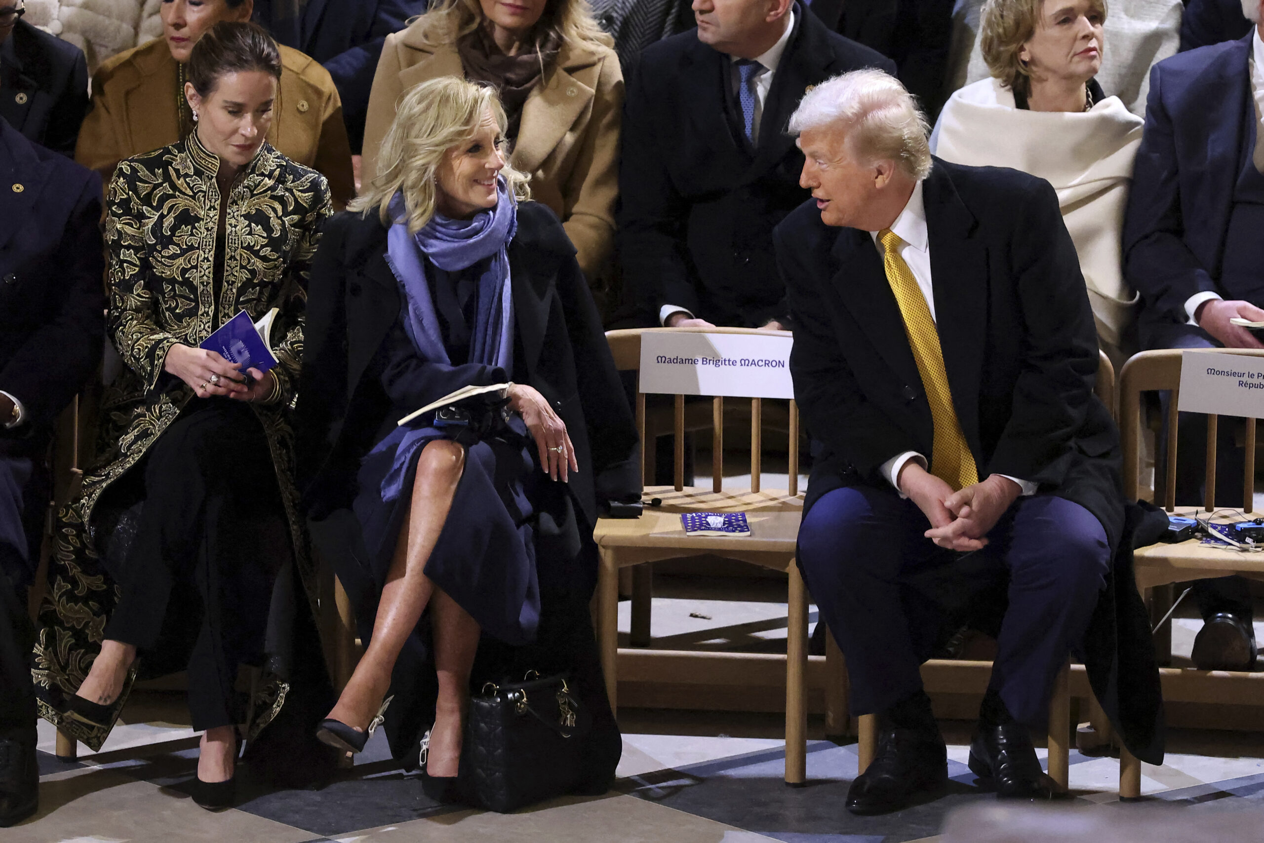 President-elect Donald Trump mocked First Lady Jill Biden again on Wednesday with a photo of two sitting together at the reopening of the Notre Dame in Paris last week.