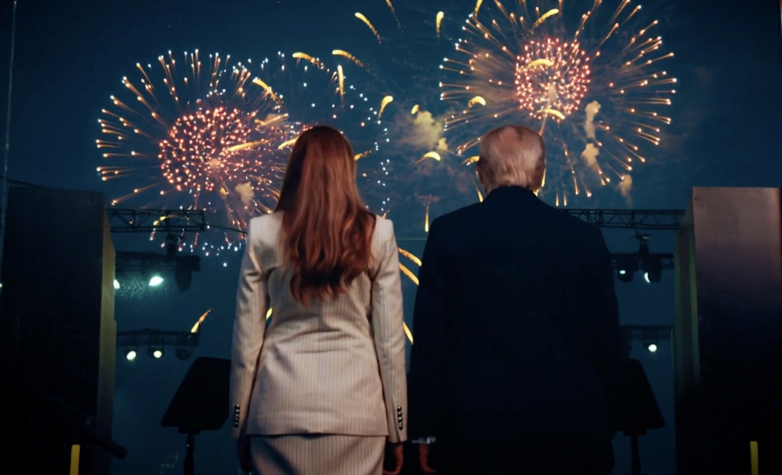 As those final words are spoken, another seemingly AI-generated scene of the president and First Lady Melania Trump is shown as the couple watch fireworks bursting out over the Washington Monument.