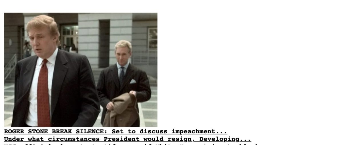 The news aggregator posted a top-side link saying “ROGER STONE BREAK SILENCE: Set to discuss impeachment… Under what circumstances President would resign, Developing…”