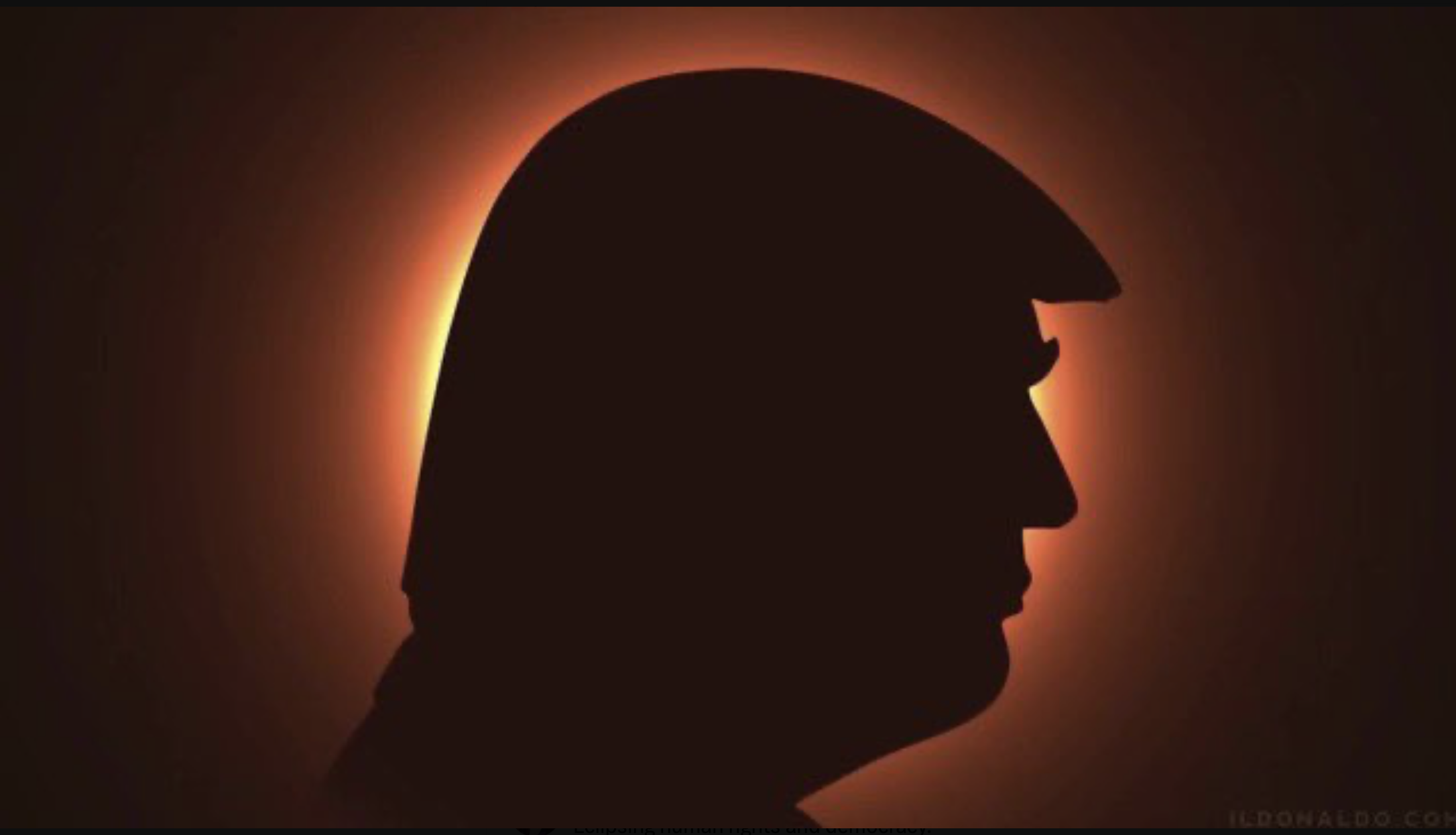 The image was taken from a campaign video Trump posted on his Truth Social account, apparently inferring that his MAGA presence is “eclipsing” political dissenters and Never Trumpers.
