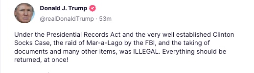 MELTDOWN: Trump Bizarrely Cites ‘Well Established Clinton Socks Case’ in Bonkers Statement About Seized Docs from Mar-a-Lago