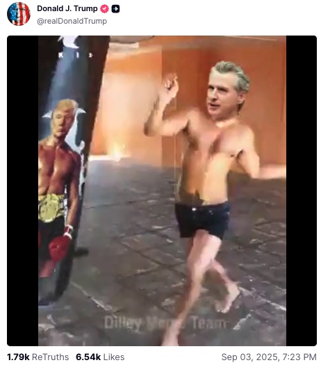 A video of Newsom with a “Trump 2028” hat imposed onto the governor’s head.