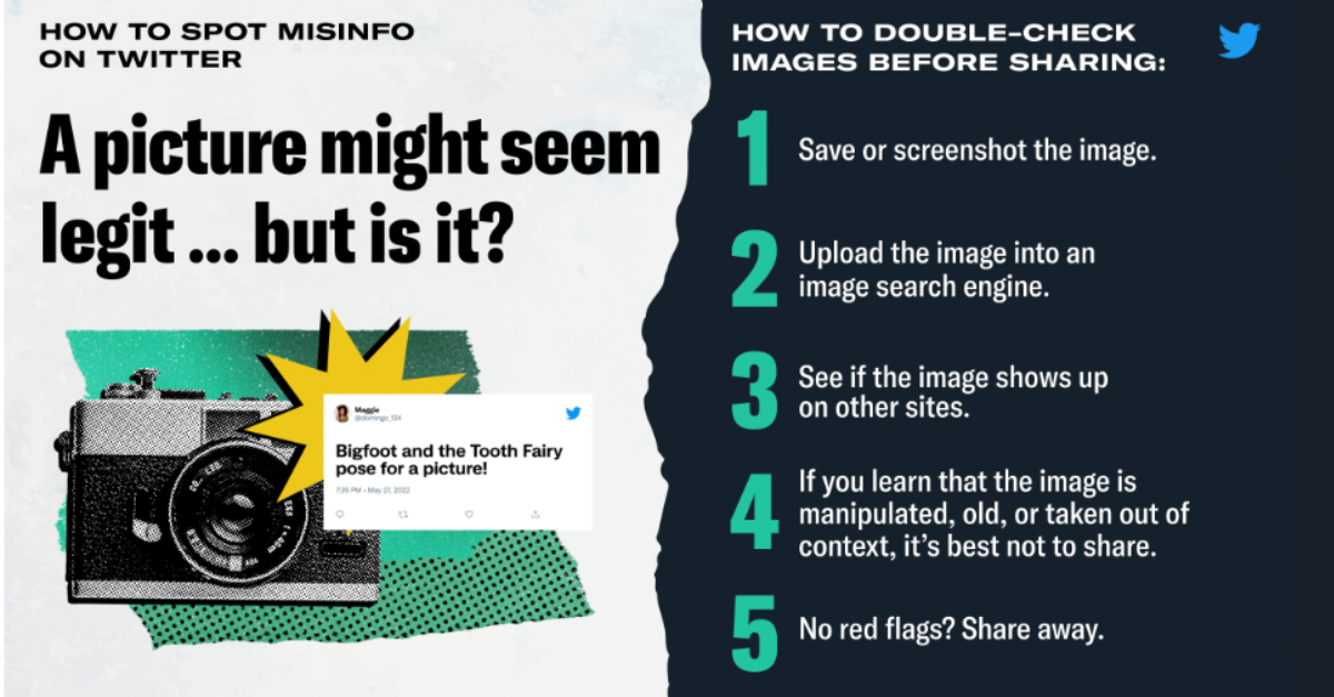 The post concluded by warning users against deceptive pictures. Attached was an infographic with a five step process users can follow to verify pictures they discover on the site.