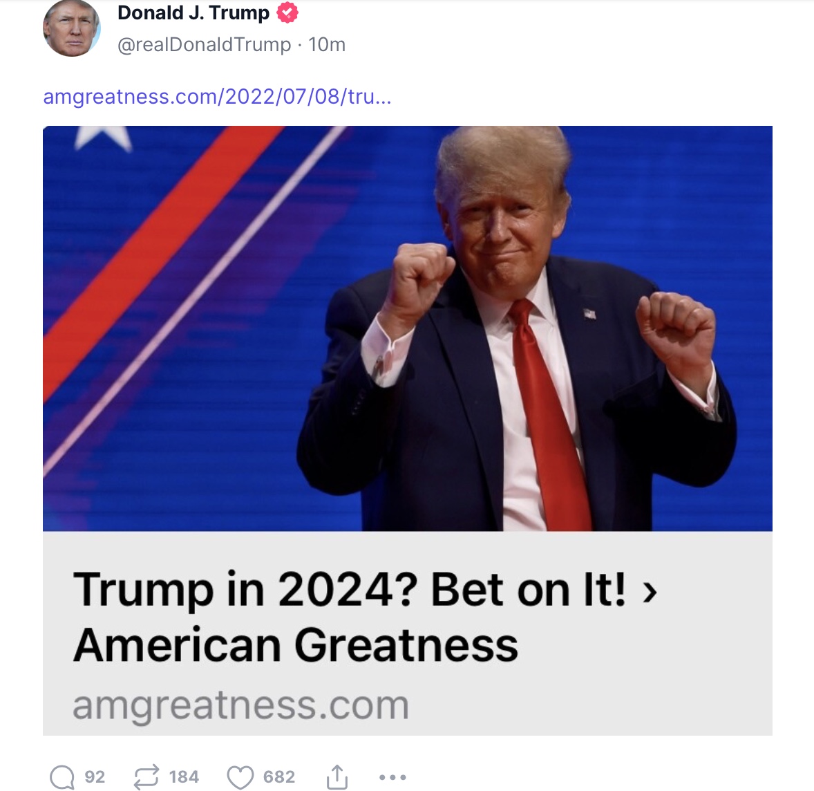 Between the headline and the contents, the article is a massive love-letter to Trump, and the ex-president left very little to the imagination as he shared it with his followers on Truth Social.