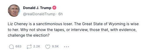 Trump found time to insult Liz. Cheney as a “sanctimonious loser”: