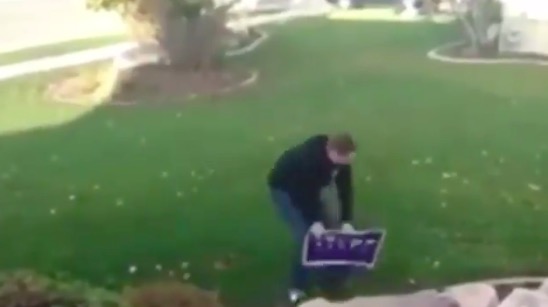 Trump Social Media Chief Shares Video of Man Getting Shocked Trying to Steal ELECTRIC Campaign Sign