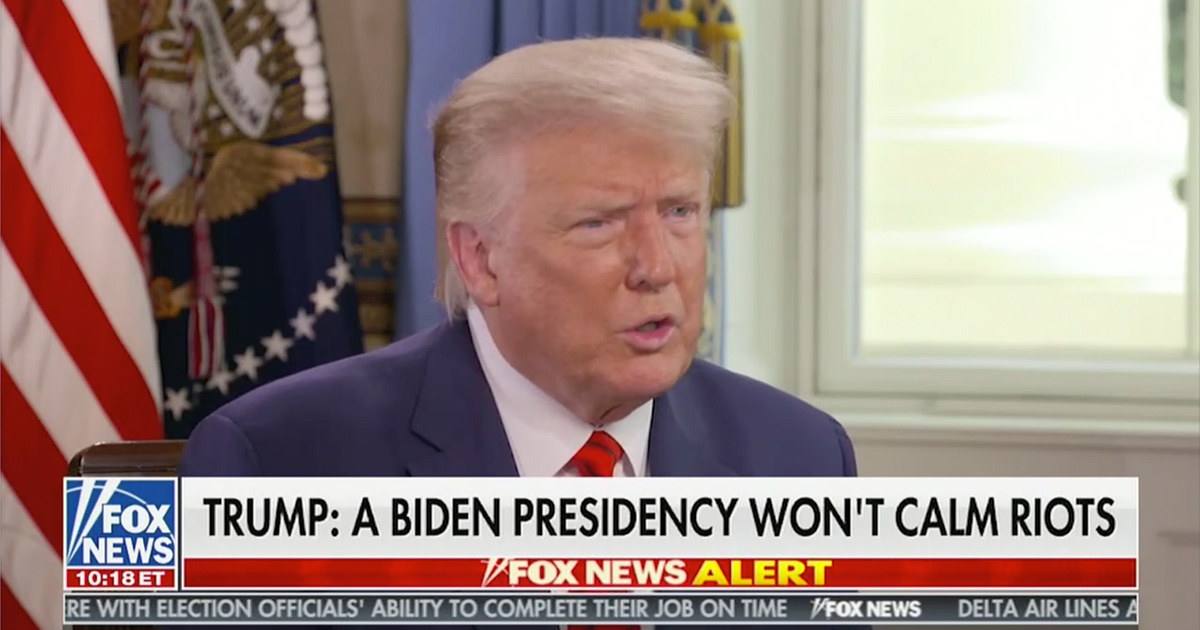 President Donald Trump appeared on Fox News Monday in an interview with Laura Ingraham and, among other things, said that Joe Biden isn’t going to calm down current civil unrest if he gets elected. But it was his conspiracy theory that the former Vice President was being controlled by “men in dark shadows,” that elicited the most significant reaction on Twitter.