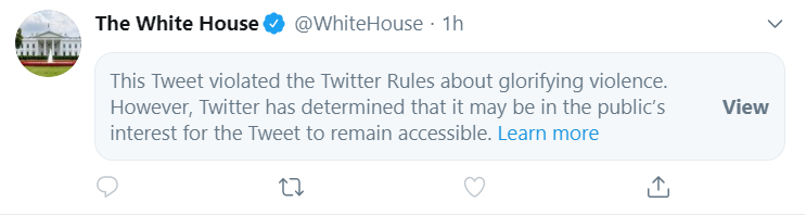 UPDATE: 9:45 a.m.: Twitter has now hidden the White House tweet: