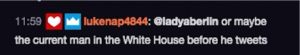 Though the chat – and the show itself – is incredibly wholesome and very rarely political, Lady Aberlin, as she was called on the show, shocked the Twitch community when she put President Donald Trump on blast.