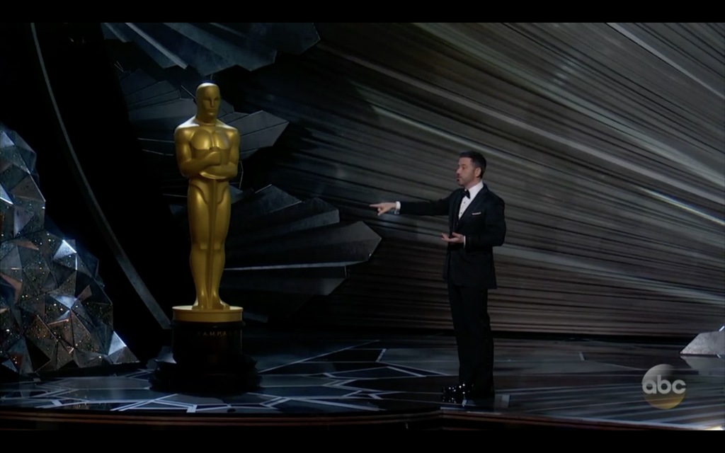 Oscars host Jimmy Kimmel kicked off the show by praising a penis-less Oscar statuette, joking that we “need more men like him” in Hollywood.