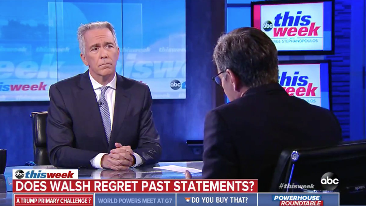 Walsh announced his bid on ABC’s This Week this morning and George Stephanopoulos brought up a number of comments he’s made in the past few years, telling Walsh he “provided aid and comfort” for much of Trump’s own rhetoric.