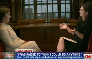 That certainly seems to be the impression she gave CNN, whose pitch email for the clip describes Mrs. Bush’s exchange with Erin Burnett this way: