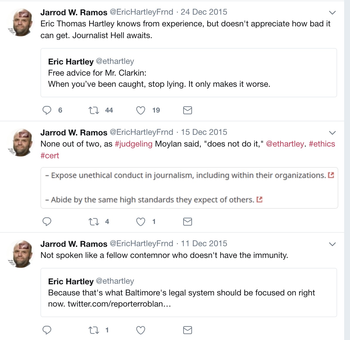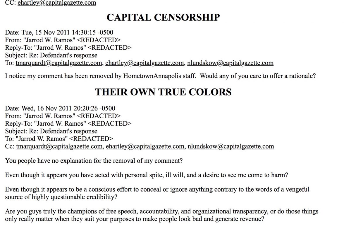 The Baltimore Sun also offers this harrowing note: “A Twitter page in Ramos’ name on Thursday featured Hartley’s picture as its avatar, and a banner image included photographs of Marquardt and the Capital’s former owner Philip Merrill.”
