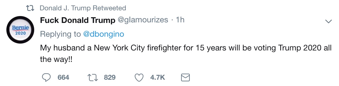 A screen captures of the Donald J. Trump retweeted F*ck Donald Trump: