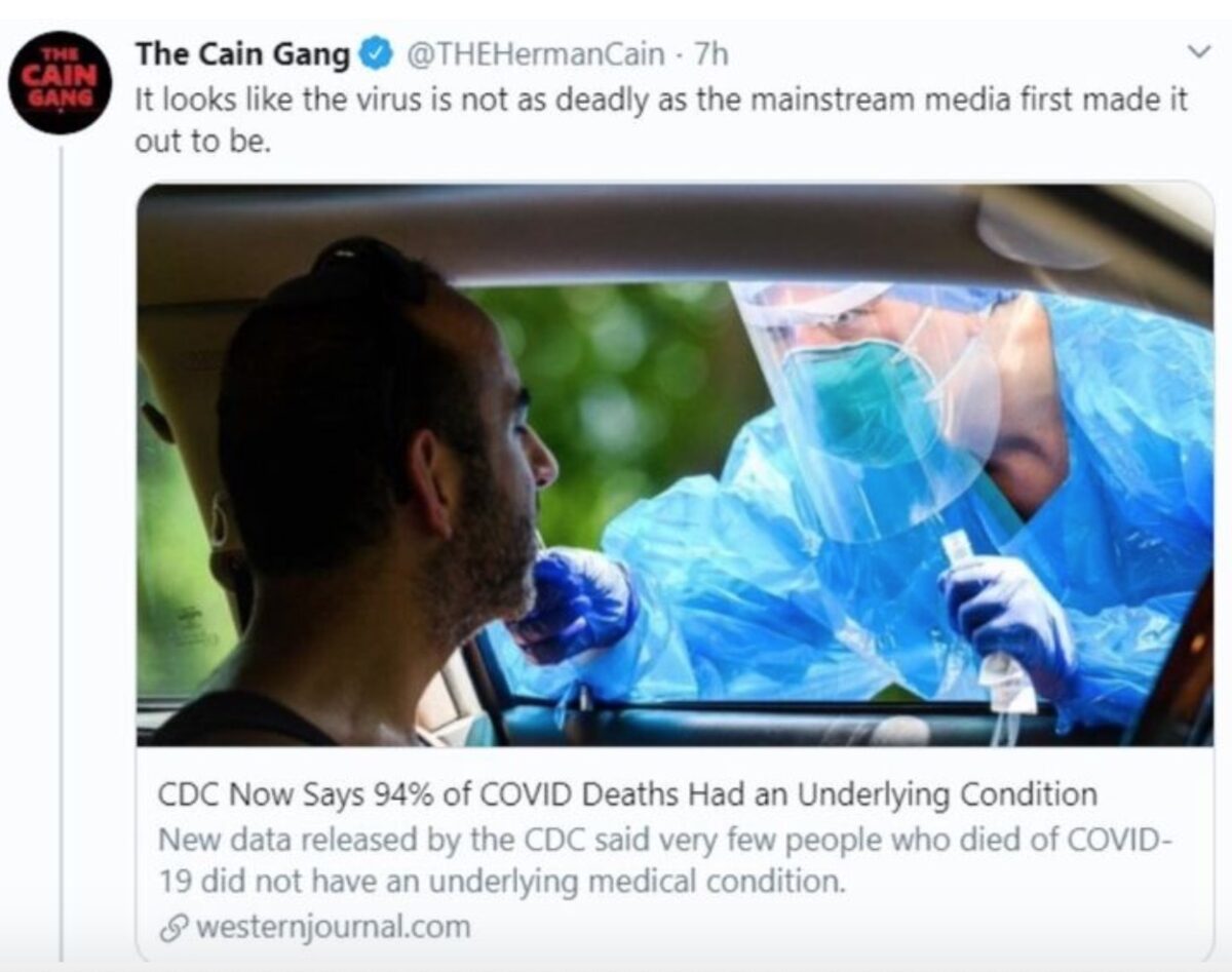 Herman Cain’s Twitter Account Downplays Deadliness of Coronavirus After He Dies Of Coronavirus
